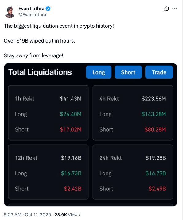 Meanwhile, auto-deleveraging kicked in across derivatives venues as millions of long positions were forcibly sold into a falling market. With no circuit-breakers in crypto, the sell-off became self-feeding until the weakest positions were cleared.In essence, excessive speculative leverage met a macro spark in a thin-liquidity window, triggering the market’s most severe leverage flush on record.